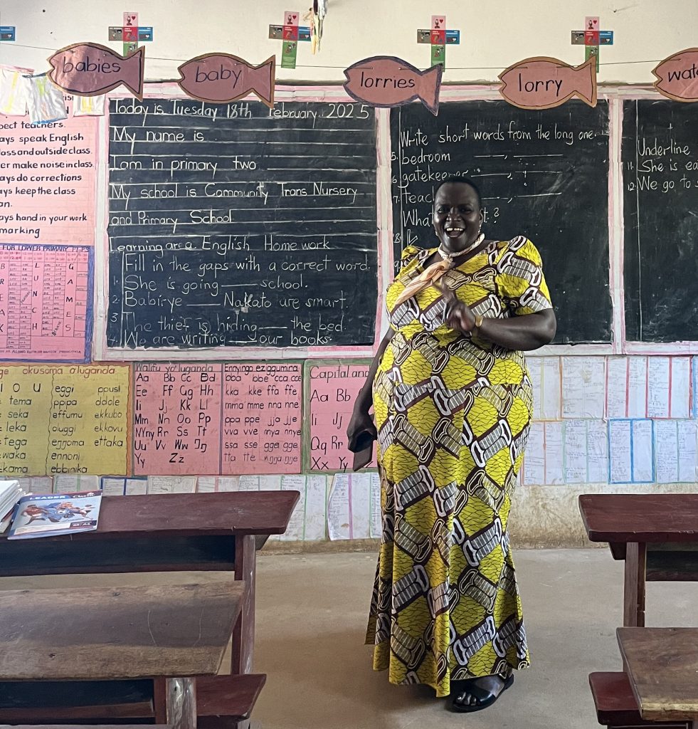 Florence Were, die Direktorin der Community Trans Nursery and Primary School in Iganga, kennt diese Realität gut. Sie musste mit 14 die Schule abbrechen – zu viele Geschwister, kein Geld, kein Rückhalt. Sie arbeitete jahrelang als Haushaltshilfe und später an einer Tankstelle. Die Sehnsucht nach Bildung blieb. Mit 32 brachte ihr Ehemann sie zurück in die Schule – sie schloss schließlich ein Universitätsstudium in Bildungswissenschaften ab. Doch unterrichten allein reichte ihr nicht. Sie sah den Mangel an Schulen und beschloss zu handeln. Mit ihrem Mann gründete sie eine Schule – aus dem Nichts: ein Kirchenraum, ein paar Bänke, ein paar Tafeln. Sie starteten mit 54 Kindern. Nach und nach kamen selbstgebaute Klassenzimmer hinzu. Heute ist die Schule offiziell anerkannt, registriert als Community Development Organisation und zugelassen vom Bildungsministerium.