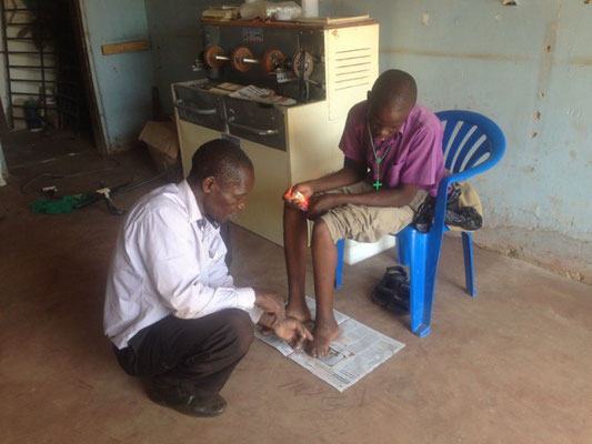 Viele ältere Menschen in Uganda leiden unter den Folgen einer Poliomyelitis im Kindesalter. Dank unserer Unterstützung können im St. Joseph Orthopädiezentrum nun bessere Schienen und Prothesen angepasst werden, die die Beweglichkeit verbessern. Auch Kinder mit unbehandelten Fehlbildungen – wie Daniel (11) mit einem schmerzhaft deformierten Fuß – erhalten nun eine Chance auf ein normales Leben. Trotz fehlender Materialien und schwieriger Wundverhältnisse geben die Orthopäden ihr Bestes. Auch Patienten wie Jacob, der nach einer verunreinigten Malaria-Injektion die Kontrolle über sein Bein verlor, bekommen Stabilität und Hoffnung durch angepasste Schienen.